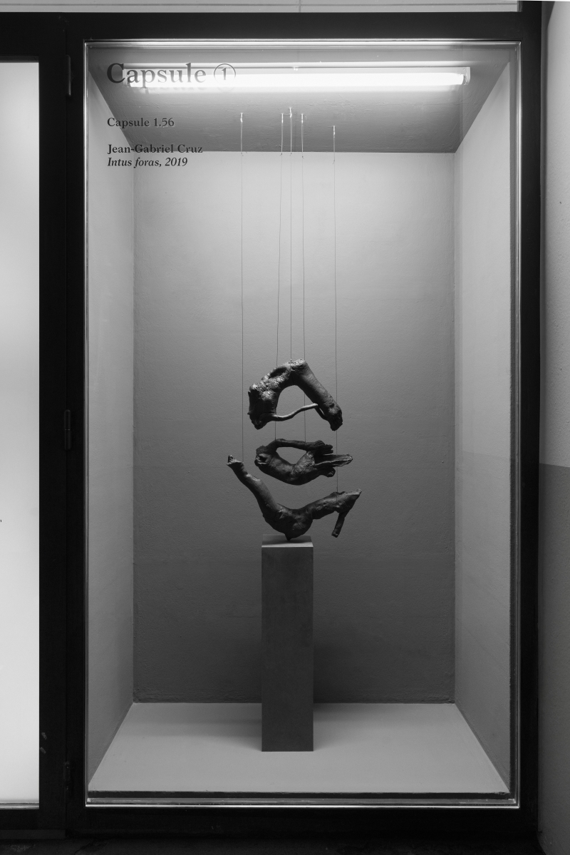 Intrus foras brouille la limite entre l’intérieur et l’extérieur, par le titre, par le choix des objets et celui de mettre un socle. Jean-Gabriel Cruz explore à travers sa pratique céramique et ses installations utilisant le plastique fondu, la notion de monde intérieur. Ses recherches questionnent autant les objets qui nous entourent, que les espaces qui nous contiennent. Le rapport au corps, bien que sous entendu, est omniprésent.