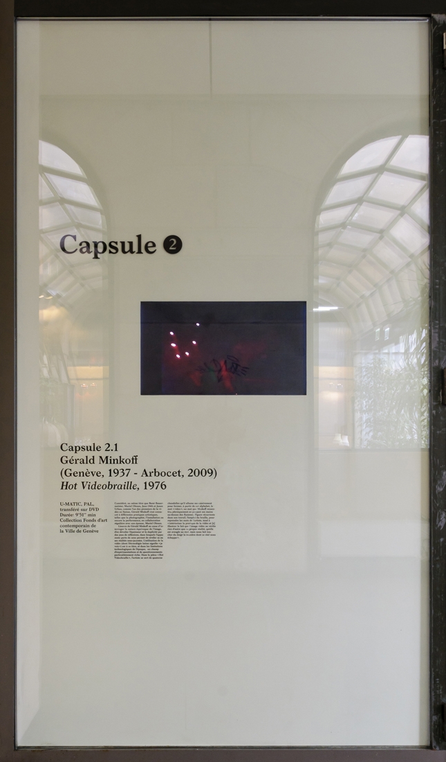Hot Videobraille, 1976 U-MATIC, PAL, transféré sur DVD Durée: 9’51’’ min Gérald Minkoff (Genève, 1937 - Arbocet, 2009) Considéré, au même titre que René Bauermeister, Muriel Olesen, Jean Otth et Janos Urban, comme l’un des pionniers de la vidéo en Suisse, Gérald Minkoff s’est consacré à différentes pratiques artistiques, telles que la photographie, l’installation ou encore la performance, en collaboration régulière avec son épouse, Muriel Olesen. L’œuvre de Gérald Minkoff ne cesse d’interroger la nature équivoque de l’image, d’en dévoiler l’épaisseur et la duplicité par des jeux de réflexions, dans lesquels l’apparente perte de sens permet de révéler sa ou ses réalités sous-jacentes. L’utilisation de la vidéo (dont l’étymologie latine signifie « je vois ») est à ce titre, et dans les limitations technologiques de l’époque, un champ d’expérimentations et de questionnements particulièrement riche. Dans la pièce « Hot Videobraille », l’artiste se sert de quatorze chandelles qu’il allume successivement pour former, à partir de cet alphabet, le mot « video », un mot que Minkoff ressentira physiquement en passant ses mains au-dessus des flammes. Figure récurrente dans son travail, l’emploi du braille, pour reprendre les mots de l’artiste, tend à « intérioriser la pratique de la vidéo et [à] illustrer le fait que l’image vidéo ne vérifie rien d’autre que sa propre réalité, qu’elle est aveugle au réel, mais nous fait toucher du doigt la manière dont ce réel nous échappe ». Collection Fonds d’art contemporain de la Ville de Genève