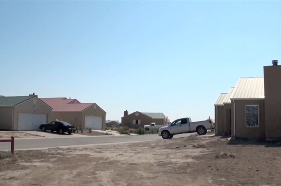 Malgré leur apparent confort, ces maisons restent en grande majorité vides. Deux modes de vie qui s'affrontent ici en plein désert, deux rapports à la terre et à la propriété que tout sépare.