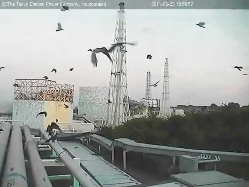 En juin 2011, trois mois après la catastrophe de la centrale nucléaire de Fukushima Daiichi, suite à un puissant séisme et le tsunami qui s’ensuivit, l’exploitant Tepco installait une livecam sur le site sinistré. Accessible librement sur Internet, ce plan fixe frontal constitue le matériau exclusif du film de Philippe Rouy. Si Tepco, dans un souci de transparence opaque, prétendait donner à « voir » ce qui était et est toujours en cours, ce sont paradoxalement les éléments périphériques qui occupent ici notre attention : variations climatiques, déambulation fantomatiques des « décontaminateurs », le passage d’un renard, d’un vol d’oiseaux…