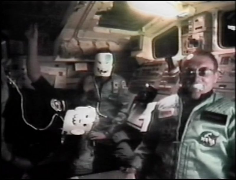 Les enregistrements de conversations téléphoniques entre l’artiste et son frère sont agencés avec des extraits de programmes télévisuels et d’autres images tournées par Reynolds. Grâce au montage, le public ébahi, tournant son regard vers le ciel, n’observe plus une fusée décoller, mais l’austère bâtiment d’une prison. On comprend alors que si astronautes et prisonniers partagent des expériences similaires – isolement prolongé dans un espace restreint, éloignement des proches, mouvements et consommation limités –, ils bénéficient d’un traitement opposé : là où les uns sont célébrés comme héroïques, les autres sont invisibilisés, ou dépeints comme violents et effectivement condamnables. Space Ghost montre au contraire la violence de l’institution carcérale, où l’isolement et l’ennui règnent selon le frère de la vidéaste.
