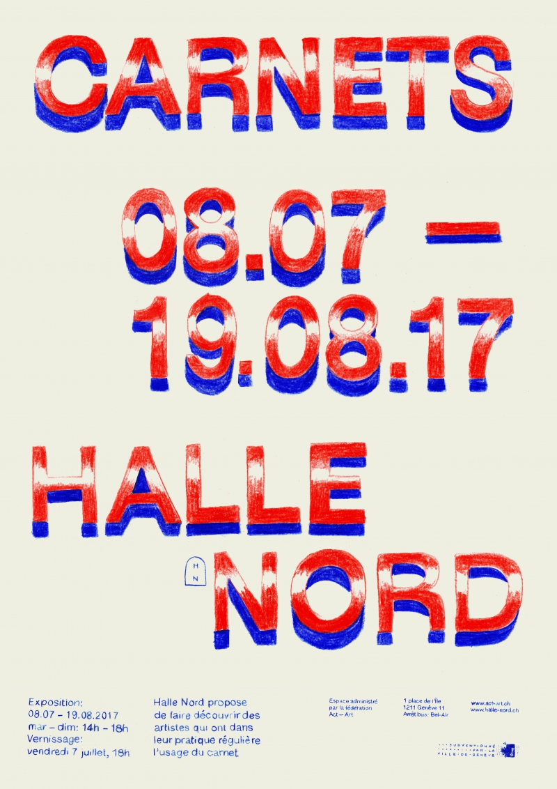 Halle Nord propose de faire découvrir des artistes qui ont dans leur pratique régulière l’usage du carnet. Pour cette deuxième édition, en plus des carnets choisis suite à un appel à participer sur Genève, la sélection s’ouvre au-delà grâce à la contribution de personnalités amies.