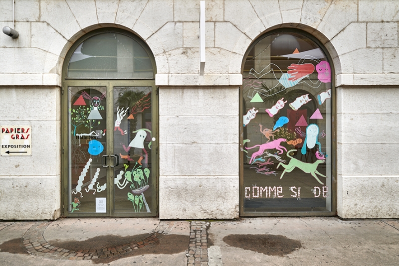 Halle Nord accueille 4 dessinatrices genevoises pour une résidence d’été de 5 semaines. Celles-ci interviendront à même les vitres intérieures de l’espace pour créer une œuvre évolutive commune dans une palette de couleurs choisies, mêlant petits détails et grandes surfaces dessinés.