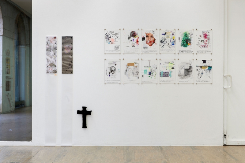 Adverse a ainsi élaboré une sélection d’oeuvres à l’image de son catalogue, qui associe des artistes précurseurs des années 1970 (Michel Vachey, Robert Varlez, le Montfaucon Research Center) à une nébuleuse internationale d’auteurs de la bande dessinée s’intéressant tous aux rapports texte/image et image/image.