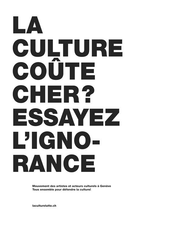 Act-art se mobilise avec les acteurs culturels de Genève pour la défense d'une scène artistique riche et diversifiée.