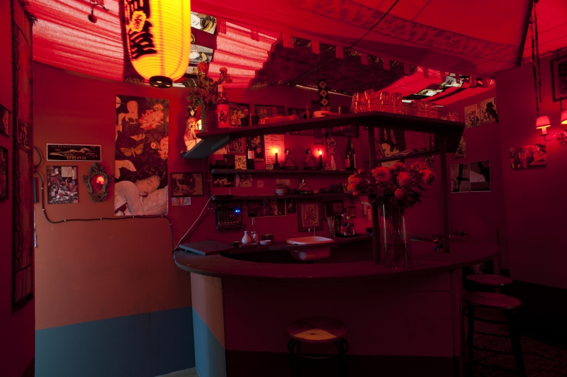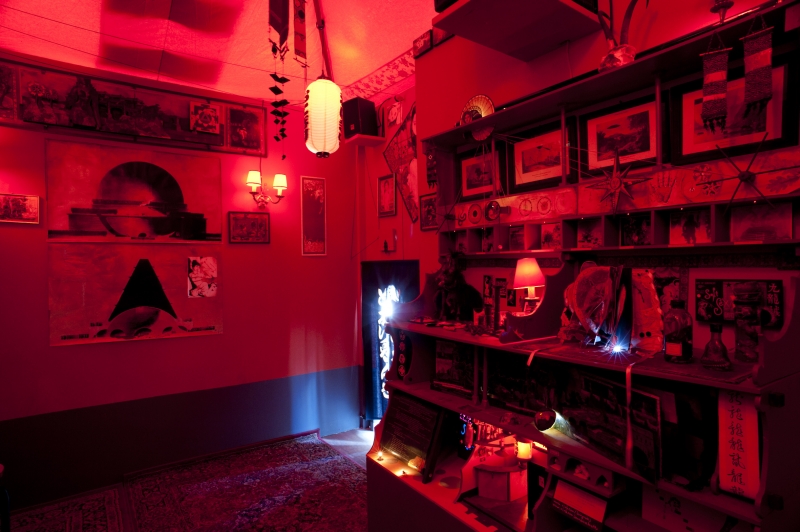 Dans cette exposition, le visiteur a accès à un premier espace, « le terrier ». Un refuge conçu comme un labyrinthe obscur au détour duquel on pourra découvrir des oeuvres relevant de l’espace intime de ces 2 artistes. Cette caverne aux trésors sera habitée plus singulièrement 3 soirs par semaine de 18h à 22h par des micro événements proposant une rencontre plus personnelle avec ce monde exposé et les pratiques des artistes. Micro atelier de sérigraphie, écoute de bandes sonores, lectures…