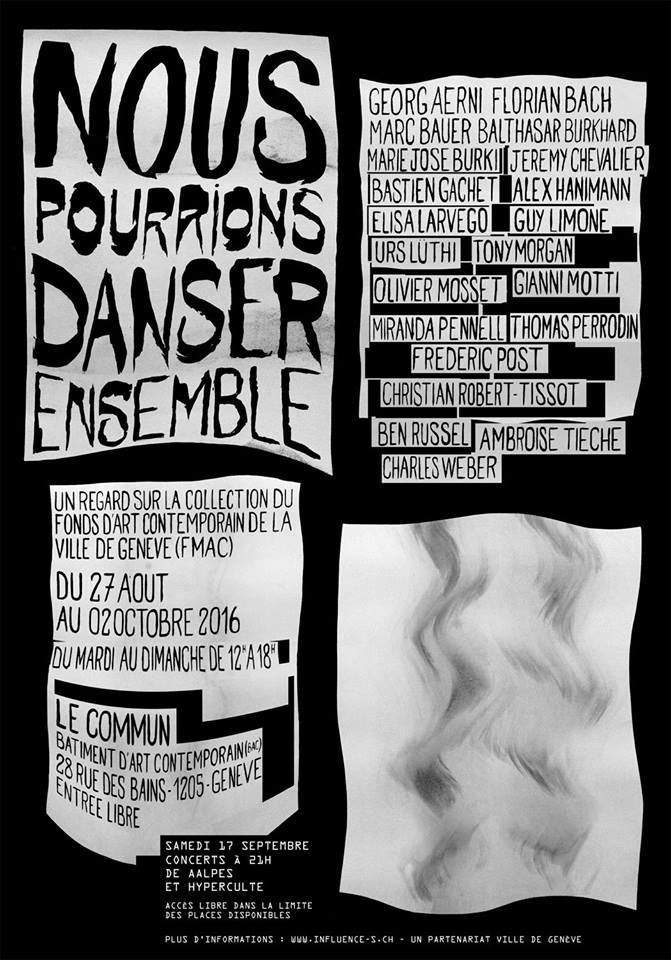 Avec : Georg Aerni, Florian Bach, Marc Bauer, Balthasar Burkhard, Marie José Burki, Jérémy Chevalier, Bastien Gachet, Alex Hanimann, Elisa Larvego, Guy Limone, Urs Lüthi, Tony Morgan, Olivier Mosset, Gianni Motti, Miranda Pennell, Thomas Perrodin, Frédéric Post, Christian Robert-Tissot, Ben Russell, Ambroise Tièche, Charles Weber