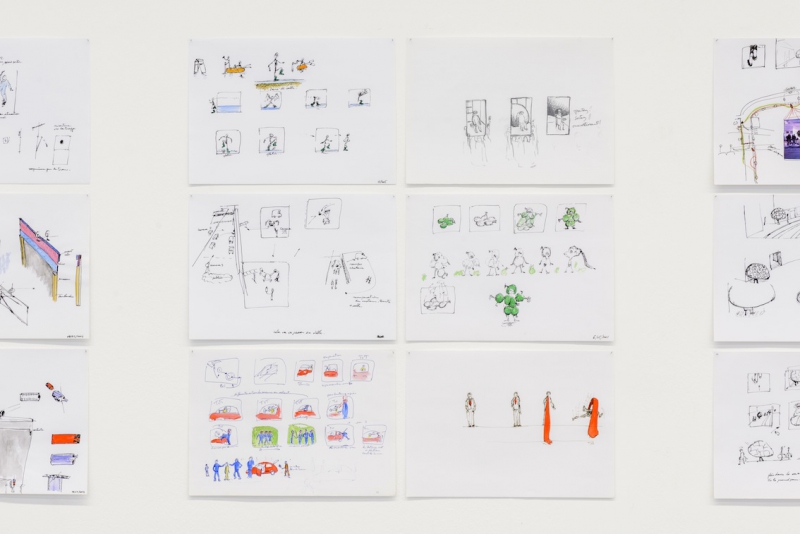 En regard de la performance «Innommable» de Cyril Verrier réalisée en amont de l’exposition à Halle Nord, l’ exposition présentera un ensemble de performances filmées accompagnées des dessins de story-boards qui ont permis leur réalisation. Ces dessins préparatifs, véritables témoignages des nombreux essais et réflexions de Cyril Verrier sont essentiels à ses réalisations.